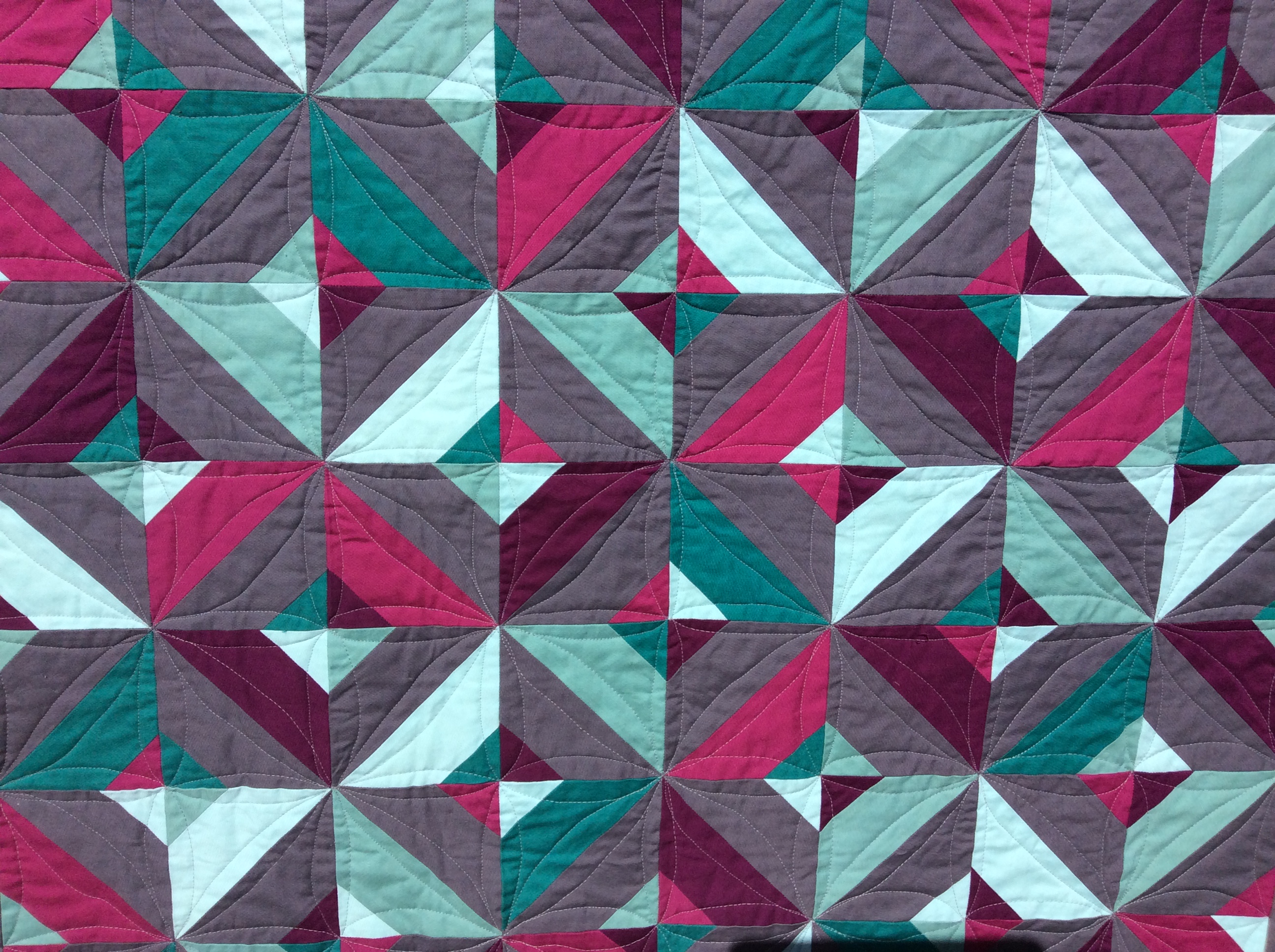 The colors are beautiful! And what a perfect name for it! Congrats on your first finish! The quilting is such a great complement to the design too!