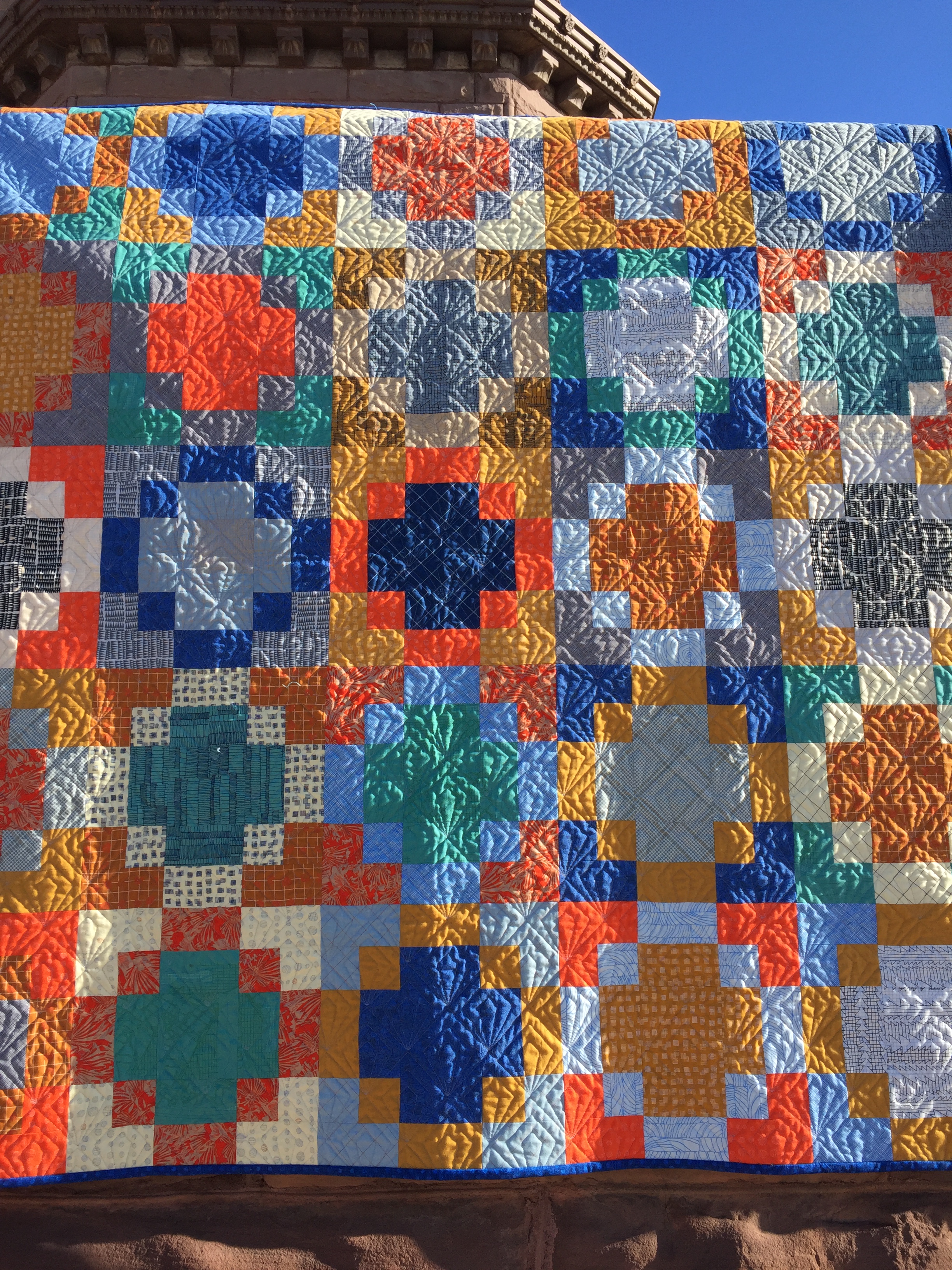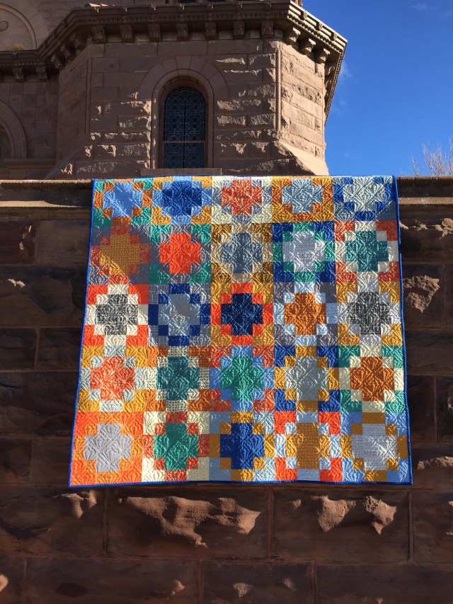 That coincidence with the sky and also the juxtaposition to the texture and color of the building is very cool. And what a meaningful act to donate something that has a quilting you really appreciate (and is quite lovely.) Its such a beautiful quilt, I wish I could find a craft (and the time) to make something so lovely to send to someone(s) who will hopefully gain great comfort from it.