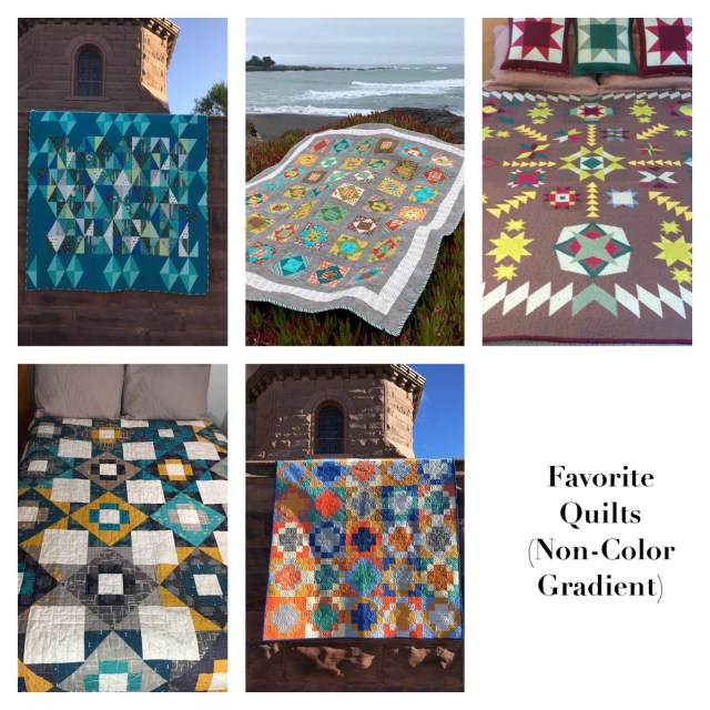 I have made photo collages of favorite projects that I’ve made over the past few years and have organized them into four different categories: Favorite Quilts (Non-Color Gradient, Favorite Quilts (Color Gradient), Favorite Small Projects, and Favorite Animal Quilts and Pillows. I was going to provide links for all of them, but I’d be here all day! Please use the search box above my Instagram photos on the right side of this page for blog posts on these projects, and most of them are tagged for easy clicking!